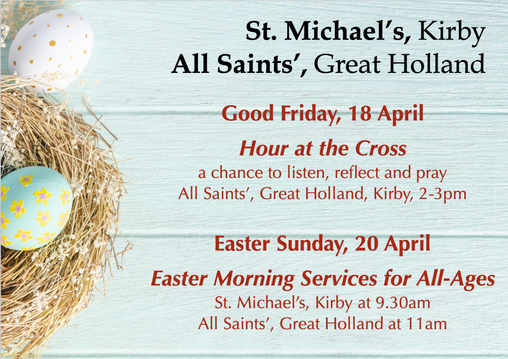 Welcome to St. Michael’s Church, Kirby and All Saints’ Church, Great Holland. We are a family of friendly, Bible-based, Anglican churches serving Kirby-le-Soken, Kirby Cross and Great Holland in North East Essex. We are followers of the Lord Jesus Christ seeking to be his disciples and we want to help and encourage others to do the same.